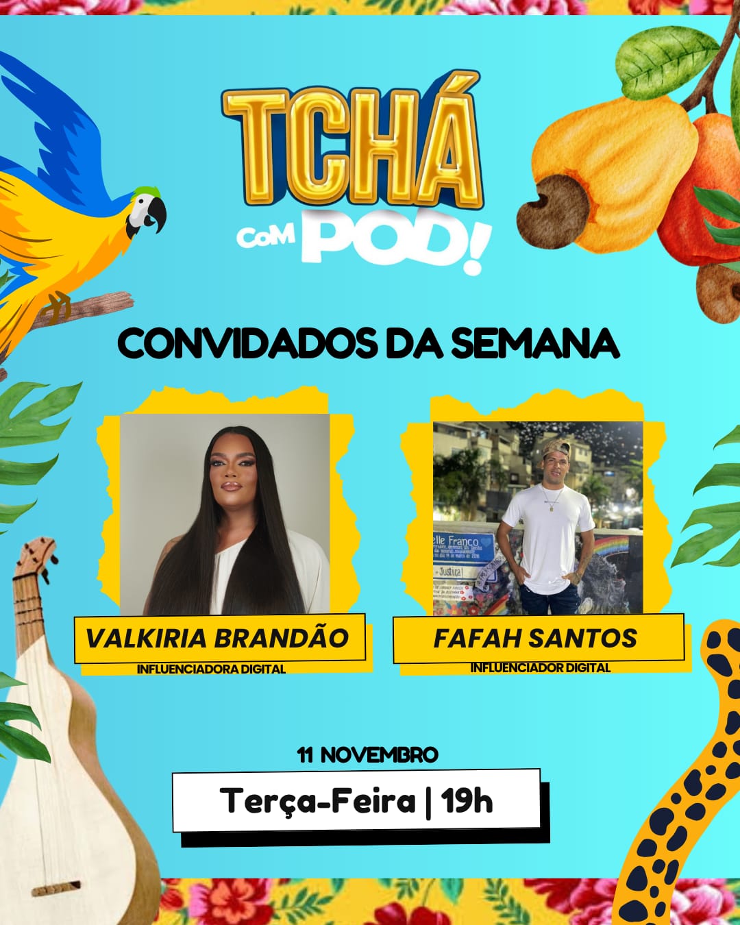 O estúdio do Tchá com Pod já está em ritmo de rojão. Amanhã, o programa recebe dois nomes que adoram um papo quente: a influenciadora